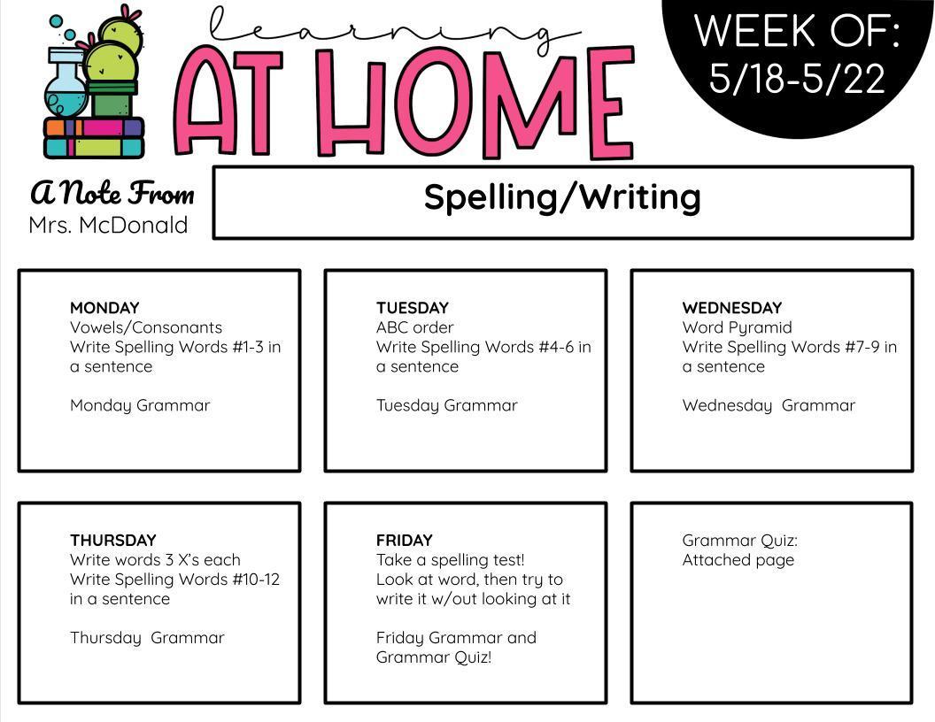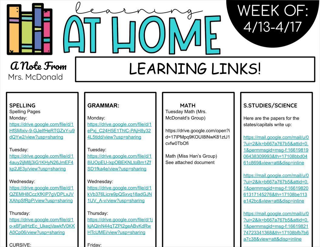 Week #8 Learning Links 5/11-5/15