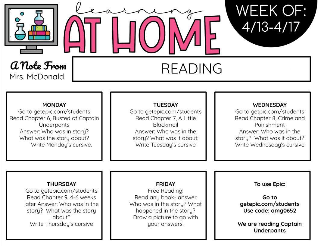 Ms. McDonald Fourth - Sixth Grade Class Assignments